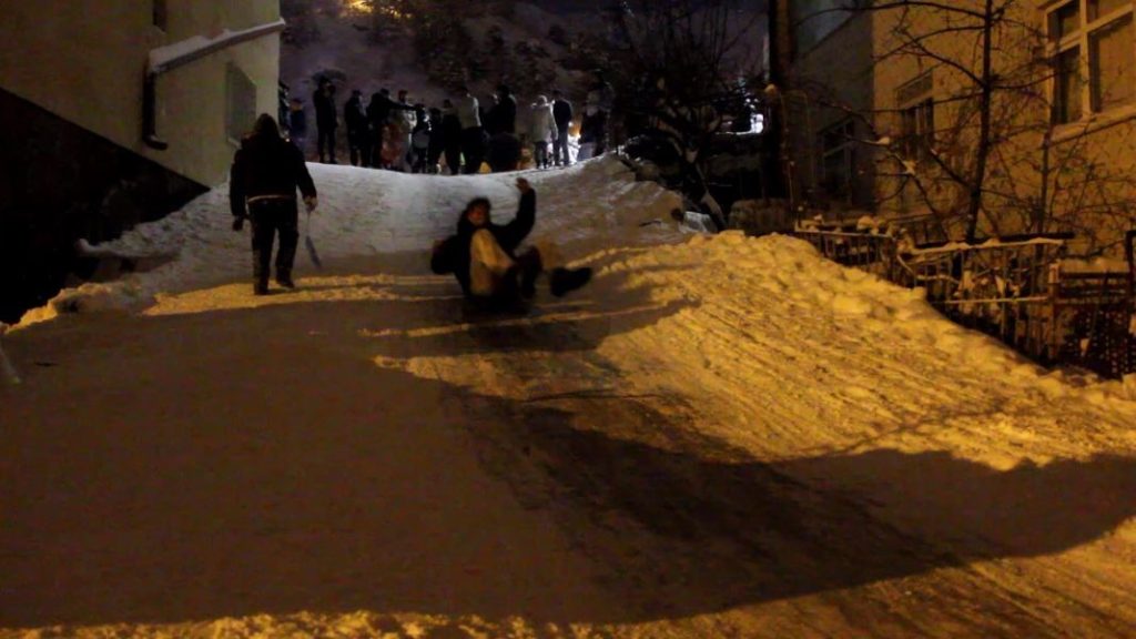 Sivas’ta yılbaşı gecesinden sonra etkisini artıran kar yağışı, Zara ilçesinde hayatı beyaza bürüdü. Yaklaşık 30 santimetreyi bulan kar kalınlığının ardından ilçe sakinleri sokaklara çıktı. Çocuklardan yetişkinlere kadar birçok kişi, buz tutan alanlarda kayarak ve ateş yakarak karın keyfini çıkardı. Eğlence, gecenin ilerleyen saatlerine kadar sürdü.