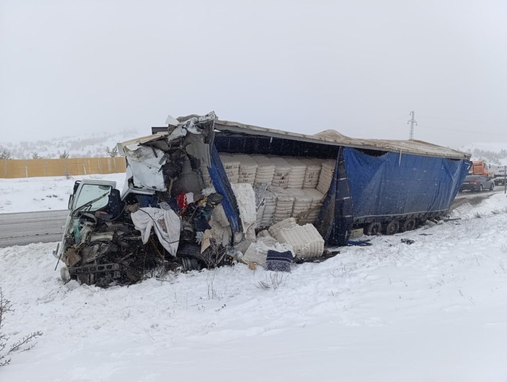 Sivas’ın Yıldızeli ilçesinde bulunan Çamlıbel Geçidi’nde iki tırın kafa kafaya çarpışması sonucu 1 kişi yaşamını yitirdi, 2 kişi ağır yaralandı. Olay yerine sağlık, AFAD ve polis ekipleri sevk edilirken yaralılar hastaneye kaldırıldı. Kazayla ilgili soruşturma başlatıldı.