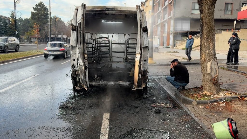 Sivas'ta park halinde bulunan bir okul servisi henüz bilinmeyen bir nedenle alev aldı. İçinde öğrenci bulunmaması oluşabilecek bir faciayı önlerken, minibüsün yanışını çaresizce izleyen sürücü büyük üzüntü yaşadı.