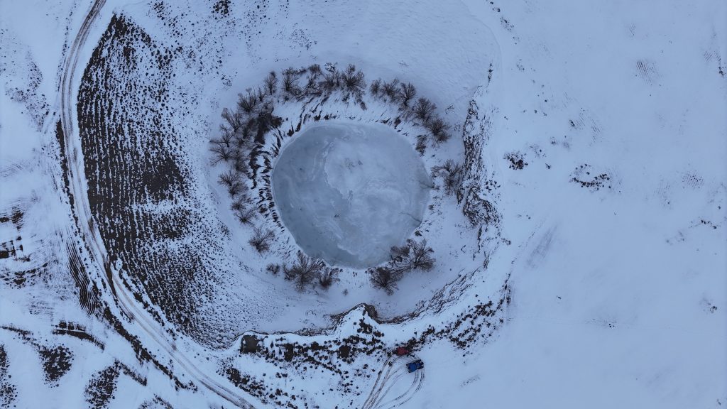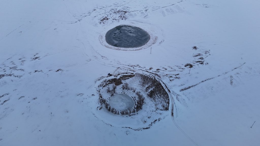 Halk arasında Sivas’ın “doğadaki iki gözü” olarak adlandırılan Ağgöl ve Karagöl, özellikle tepeden bakıldığında göz şeklini andıran yapılarıyla biliniyor. Karla kaplanan arazi üzerinde daha da belirginleşen bu doğal form, dron ile havadan görüntülendi. Ortaya çıkan görüntüler, bölgenin yalnızca yaz turizmiyle değil, kış manzaralarıyla da ön plana çıktığını bir kez daha gösterdi. Bu eşsiz görüntüler, Sivas’ın doğal güzellikleri arasında yer alan göllerin dört mevsim ziyaret edilebileceğini ortaya koyuyor.