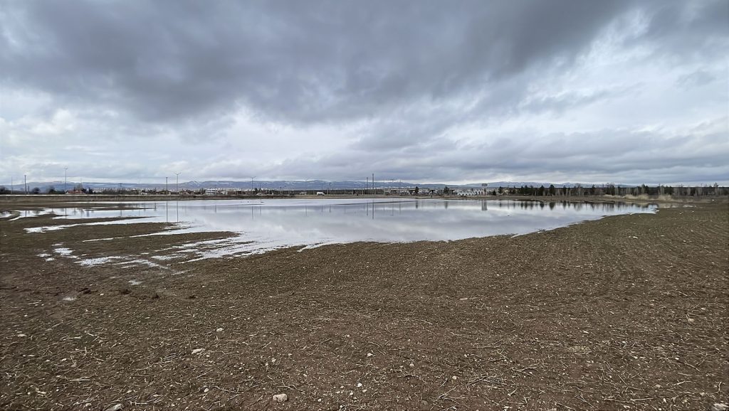 Sivas’ta karların erimesiyle Hasbahçe’de yapay göletin yanında ikinci bir gölet oluştu. “İkiz gölet” manzarası ilgi gördü.