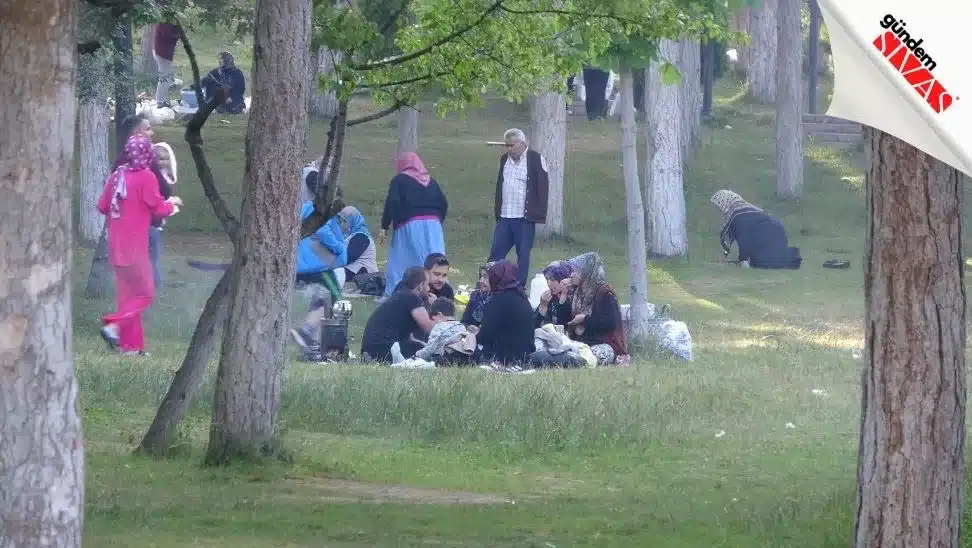 Sivas'ta hava sıcaklıklarının mevsim normallerinin üzerinde seyretmesi nedeniyle vatandaşlar mesire alanlarına akın etti.