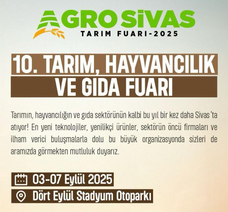 Sivas’ta Tarımın Kalbi Atıyor: AgroSivas 2025 Fuarı 3 Eylül’de Kapılarını Açıyor
