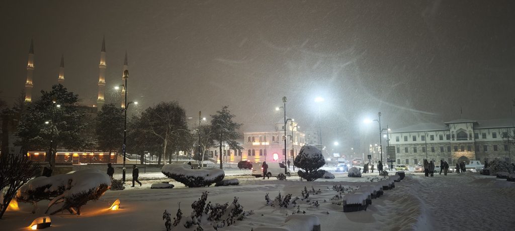 Sivas’ta sabah saatlerinden itibaren etkili olan yoğun kar yağışı, kenti beyaza bürürken Tarihi Kent Meydanı’nda görsel bir şölen oluşturdu. Selçuklu, Osmanlı ve Cumhuriyet dönemlerine ait eserlerin aynı noktada buluştuğu meydan, kar ve buz sarkıtlarıyla adeta açık hava belgeseline dönüştü. Ulaşımda aksamalar yaşansa da vatandaşlar bu eşsiz manzarayı soğuk havaya rağmen izledi.