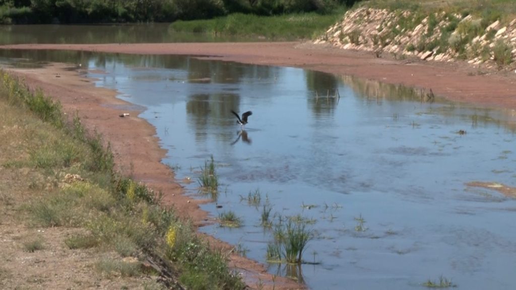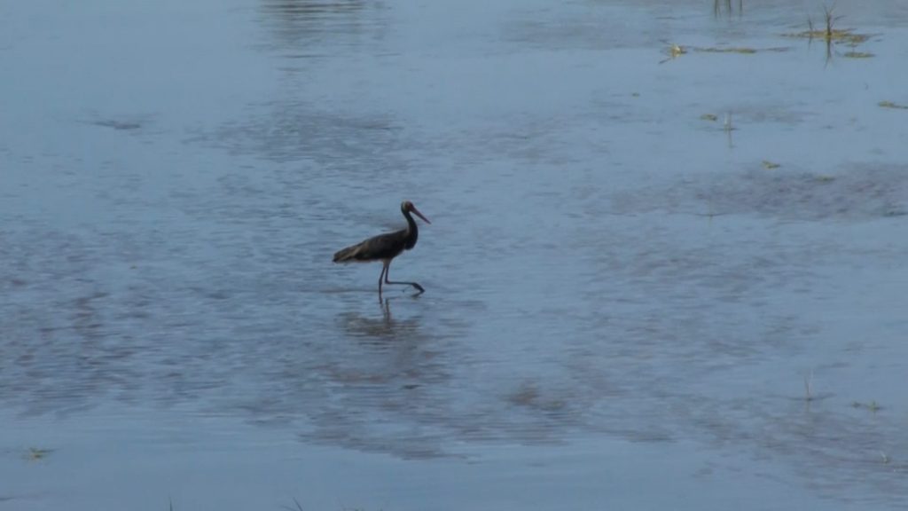 Sivas'tan doğarak Karadeniz'e dökülen ve Türkiye'nin en uzun nehri olan Kızılırmak'ta görüntülenen kara leylek, bir süre avlandı. Siyah tüyleri ve kırmızı gagasıyla dikkat çeken leylek, bir süre sonra havalanarak gözden kayboldu.