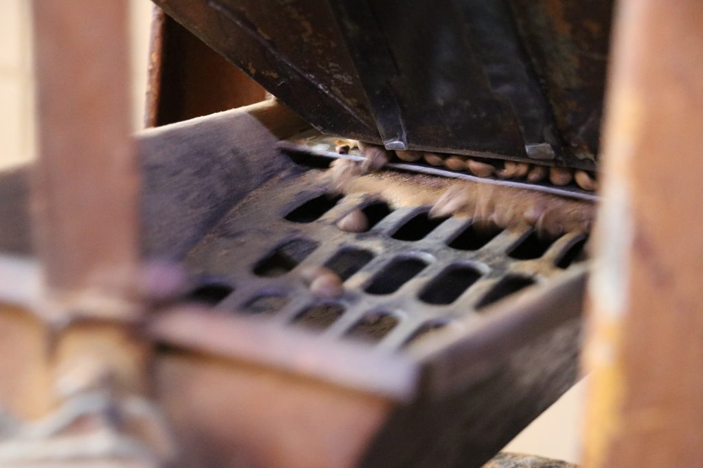 Brezilya’dan gelen çekirdekler antika kavurma makinesinde hazırlanıyor