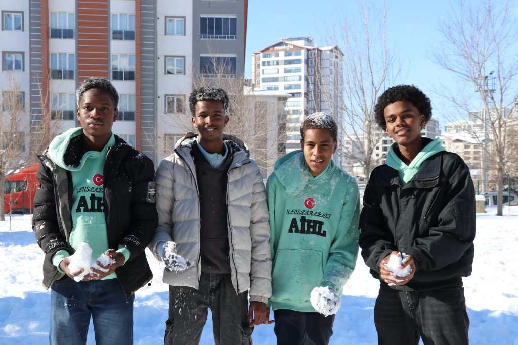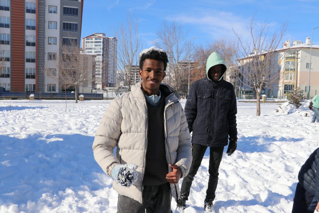 Sivas’ta eğitim hayatlarını sürdüren çok sayıda Afrikalı öğrenci, Türkiye’de geçirdikleri bu eğitim sürecinde hayatlarında ilk kez kar görmenin heyecanını yaşadı. Özellikle kış şartlarının sert yaşandığı kentte yağan kar, öğrenciler için yalnızca bir doğa olayı değil, aynı zamanda hafızalarına kazınan özel bir deneyim oldu. Sivas Uluslararası Şehit Münir Murat Ertekin Anadolu İmam Hatip Lisesi’nde öğrenim gören yabancı uyruklu öğrenciler, kar yağışıyla birlikte okul bahçesinde doyasıya eğlendi.