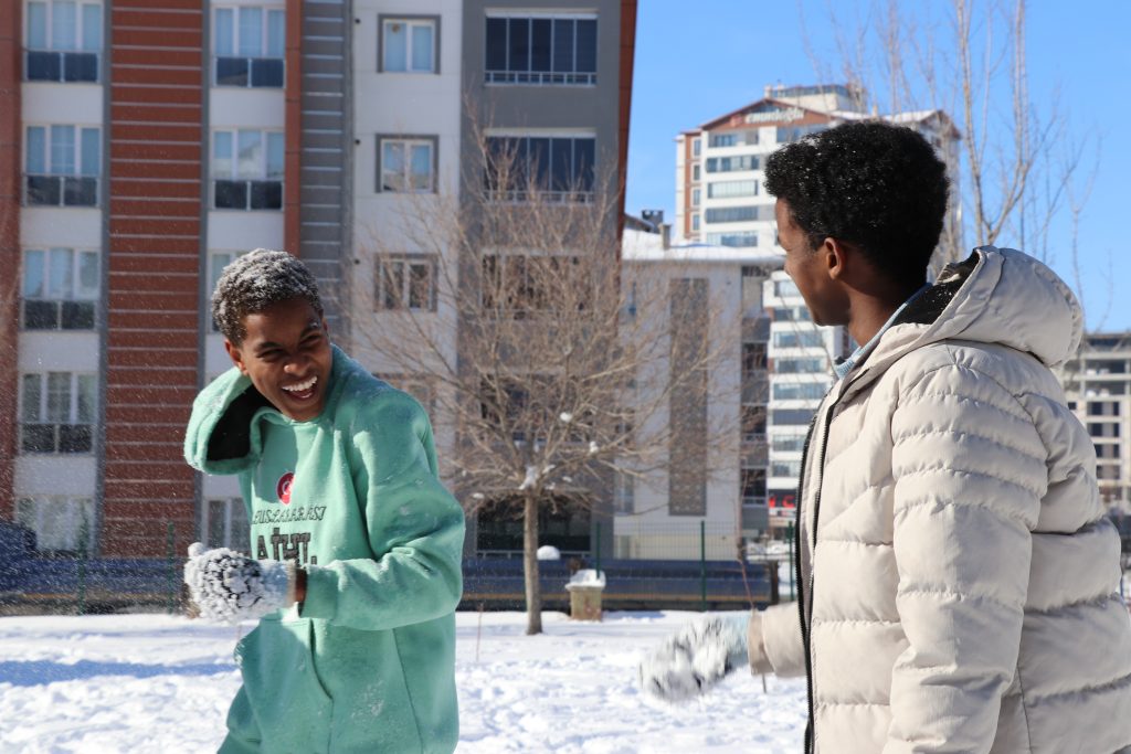 Okulda eğitim gören yaklaşık 70 yabancı öğrencinin büyük çoğunluğu Afrika kıtasından geliyor. Sıcak iklimlere alışık olan bu öğrenciler için Sivas’ın dondurucu soğuğu ve yoğun kar yağışı başta alışılması zor bir durum olsa da, karla ilk karşılaşmanın yarattığı heyecan tüm zorlukların önüne geçti. Özellikle 1. sınıf öğrencileri, daha önce hiç görmedikleri bu beyaz örtüyü büyük bir merakla keşfetti.